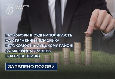- 20:16Прокурори в суді наполягають на стягненні із власника нерухомості у Луцькому районі 3,7 мільйона гривень плати за землю
