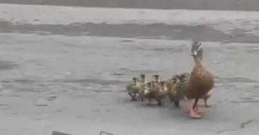 У Луцьку мама-качка з малюками чемно переходили дорогу (Відео)