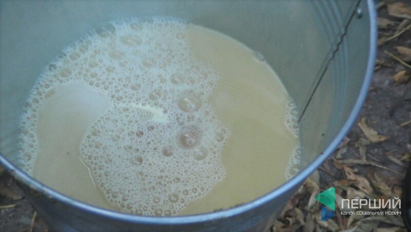 Те, що витікало із труби, виявилось зовсім не схожим на «чисту воду»: рідина – мутного білого кольору і з характерним «квасним» запахом. До речі, схоже пахне і мелясна барда.