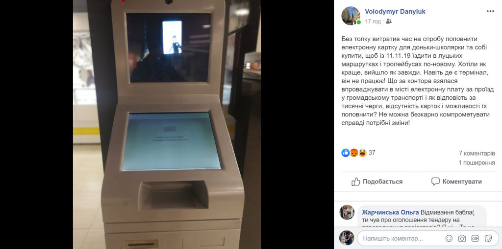 В додаток до всього, в соц.мережах люди скаржаться на те, що поповнити е-квиток дуже складно, адже термінали «зависають» або просто не працюють.
