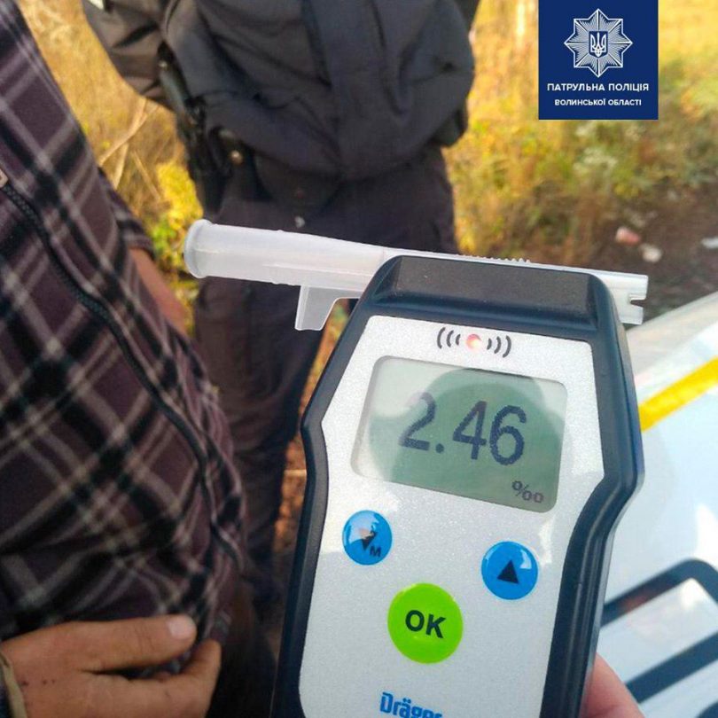 Під час спілкування поліцейські виявили у чоловіка ознаки сильного сп’яніння. Це підтвердила й перевірка – 2, 46 проміле, що в 12 разів перевищило допустиму норму!