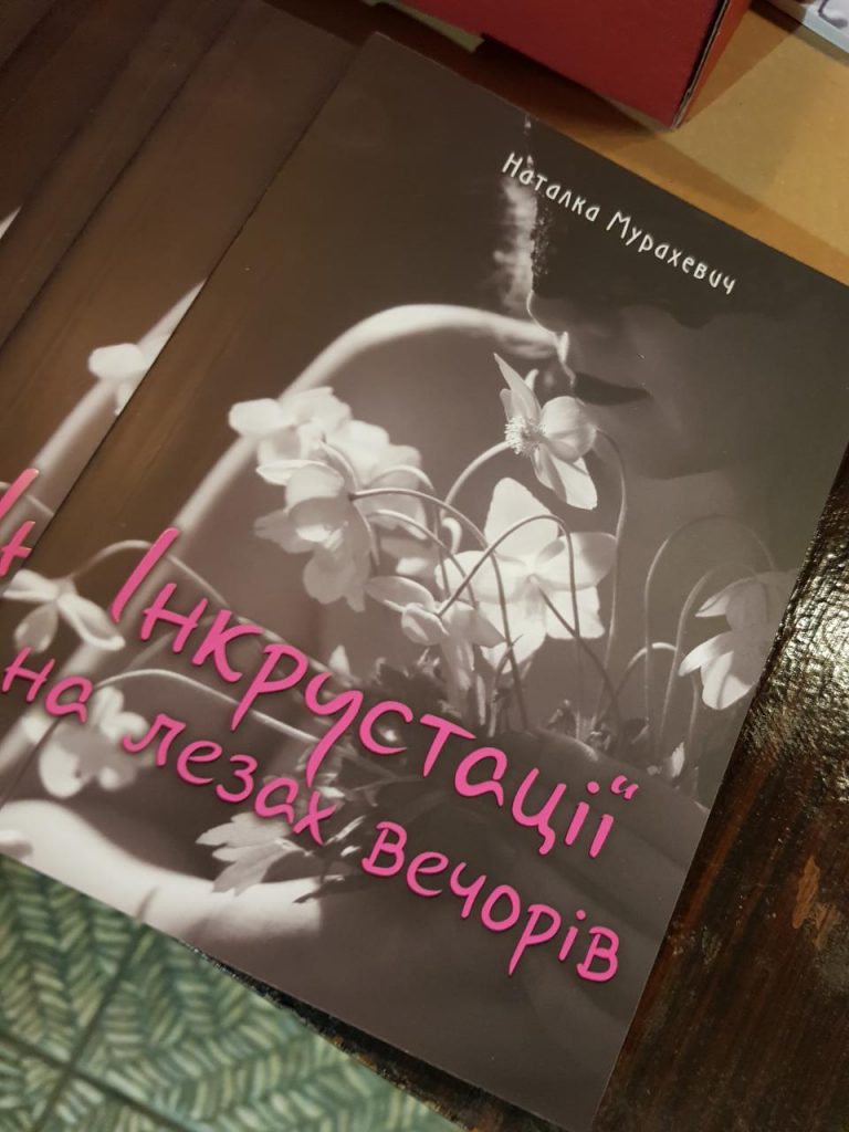В честь свого 44 Дня народження Наталія Мурахевич презентувала свою першу збірку поезій «Інкрустації на лезах вечорів». Підтримати поетесу прийшли не лише рідні, друзі та колеги, а й інші прихильники її творчості, які мали можливість спостерігати за творчим розвитком Наталії на її сторінці у мережі Facebook. Усіх присутніх господиня вечора пригощала вином – білим або червоним на вибір і цим, до слова, підняла питання про проблему вибору, з якою ми стикаємося щодня. Також пані Наталія подякувала усім, хто завітав на її свято.