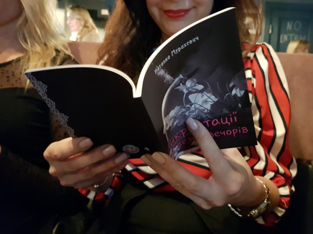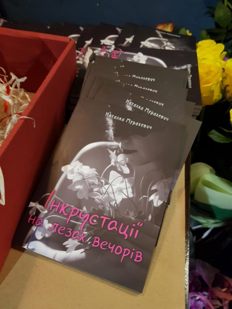 В честь свого 44 Дня народження Наталія Мурахевич презентувала свою першу збірку поезій «Інкрустації на лезах вечорів». Підтримати поетесу прийшли не лише рідні, друзі та колеги, а й інші прихильники її творчості, які мали можливість спостерігати за творчим розвитком Наталії на її сторінці у мережі Facebook. Усіх присутніх господиня вечора пригощала вином – білим або червоним на вибір і цим, до слова, підняла питання про проблему вибору, з якою ми стикаємося щодня. Також пані Наталія подякувала усім, хто завітав на її свято.