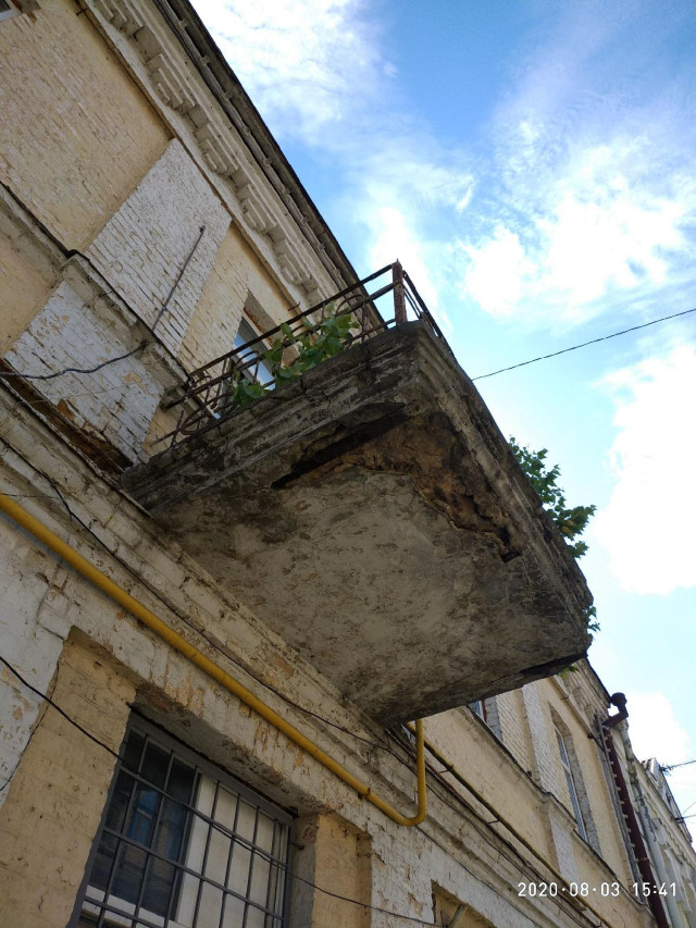 «Аварійний балкон знаходиться над пішохідним тротуаром на вулиці Кафедральній, 2. Від плити балкону відпадають шматки бетону, які можуть потрапити на людей. Для безпечного руху пішоходів потрібно відновити балкон», – вказав Ігор Соломон.
