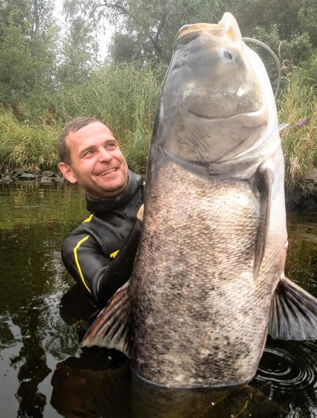Український любитель підводного полювання Олександр Громадський зміг добути в Дніпрі рибу вагою в 25 кілограм.
