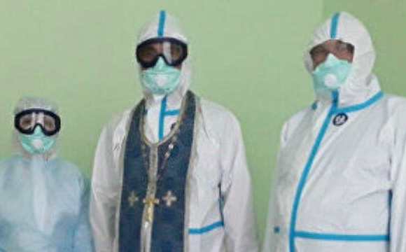 У Росії священикам видали спеціальні костюми від коронавірусу, щоб вони могли безпечно відвідувати своїх прихожан.