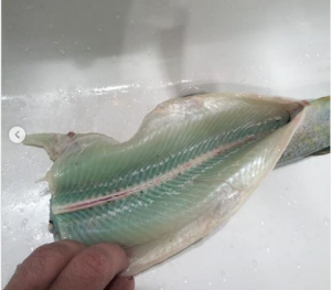 Коли приніс додому, то виявив, що зелене не лише зовнішнє забарвлення риби, а й внутрішня частина.