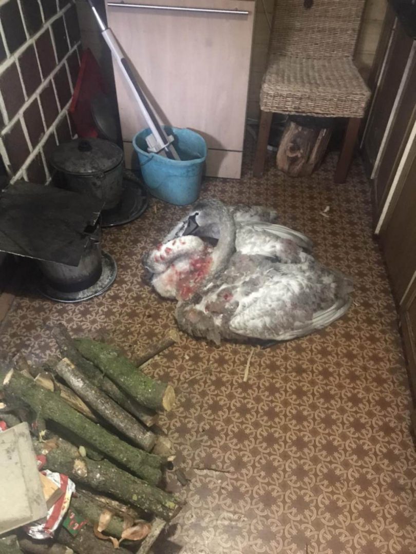 Волинянин прихистив двох лебедів, які травмувалися на замерзлій водоймі