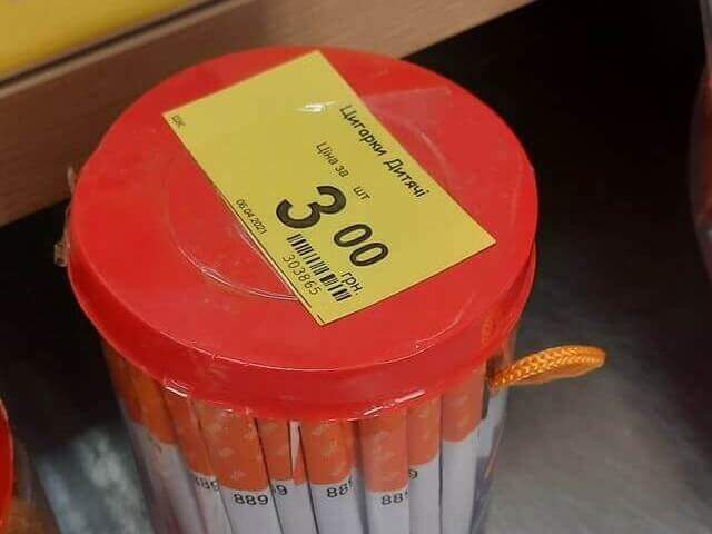 “Допис обурення. Сьогодні, у одному з магазинів, біля каси побачила таку собі “заманушку” для дітей. Як вам подобається назва : “Цигарки дитячі”? Вкладаємо у свідомість діток: спочатку дитячі цигарки, а потім вже можна і не дитячі”, – йдеться у дописі.