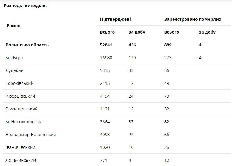 За останню добу на Волині зареєстровано 426 нових підтверджених випадків коронавірусної хвороби COVID-19 (з них дітей – 18, медпрацівників – 11). Одужало за добу – 275 осіб, летальних випадків – 4.