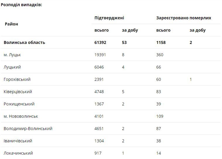 За останню добу на Волині зареєстровано 53 нових підтверджених випадки коронавірусної хвороби COVID-19 (з них дітей – 1, медпрацівників – 2). Одужало за добу – 318 осіб, летальних випадків – 2.
