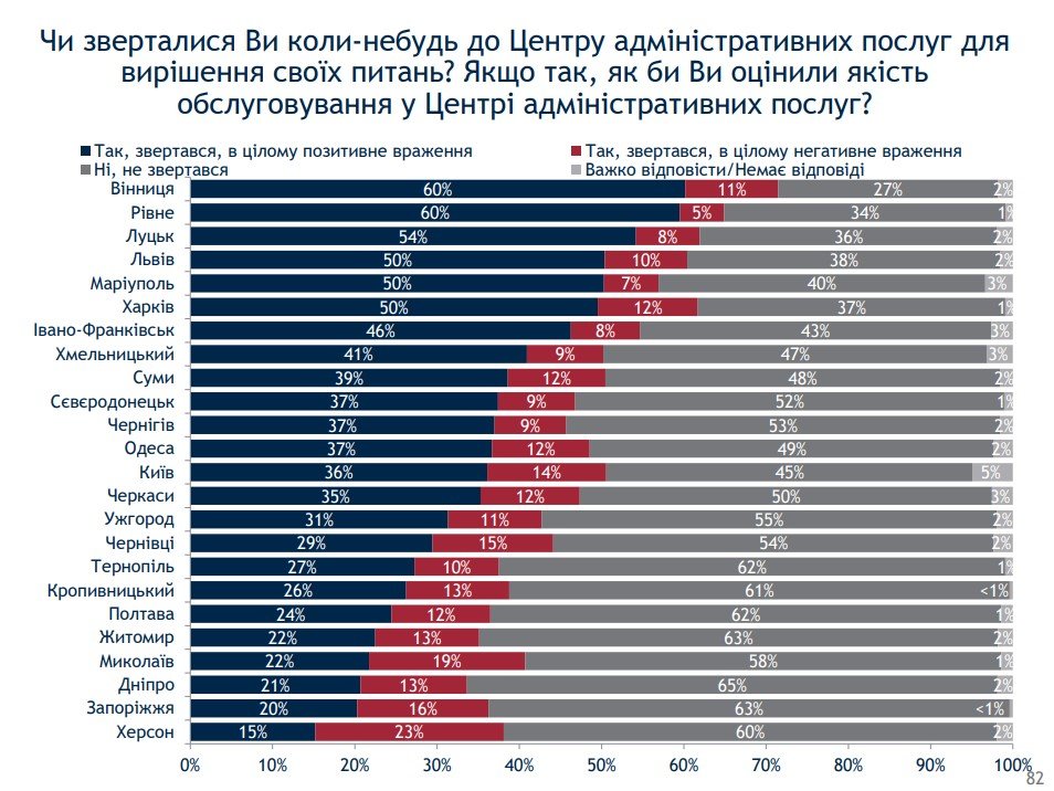 Це щорічне опитування дає всесторонній аналіз ставлення громадян до органів місцевого самоврядування та надання комунальних послуг. Проводилось воно з 12 травня по 3 червня у 24 обласних центрах України на основі вибірки, яка включала 19,196 респондентів.