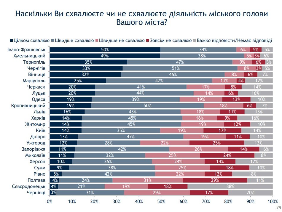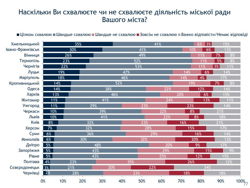 Позитивно схвалюють вони й діяльність міської ради. Показник становить 66%.