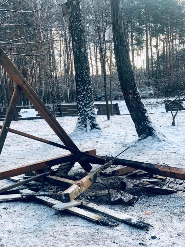 Сьогодні вночі відпочивальники зруйнували і спалили дитячу гойдалку та паркан у рекреаційному пункті «Холодок», що у Маневицькому лісництві ДП «Маневицьке ЛГ».