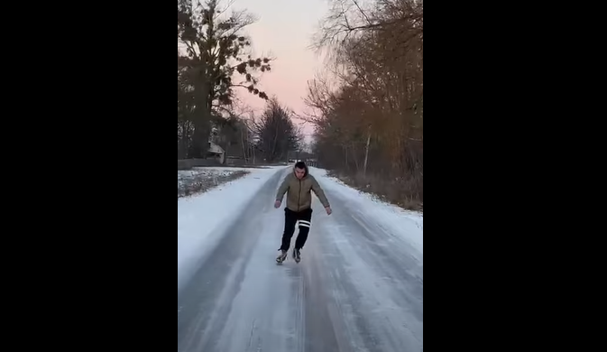 У селищі на Волині на дорозі утворився такий шар льоду, що мешканці можуть кататися на ковзанах.