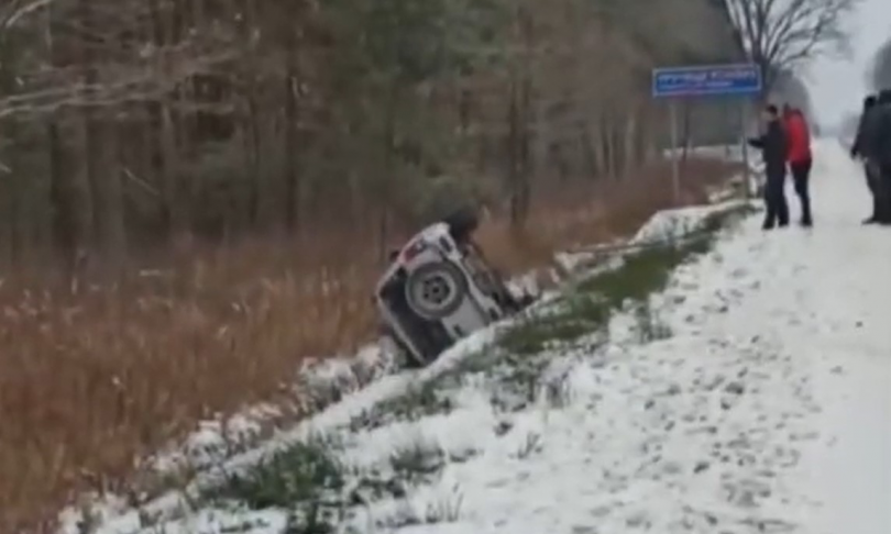 На Волині, через слизьку дорогу, кросовер перевернувся та злетів з дороги.