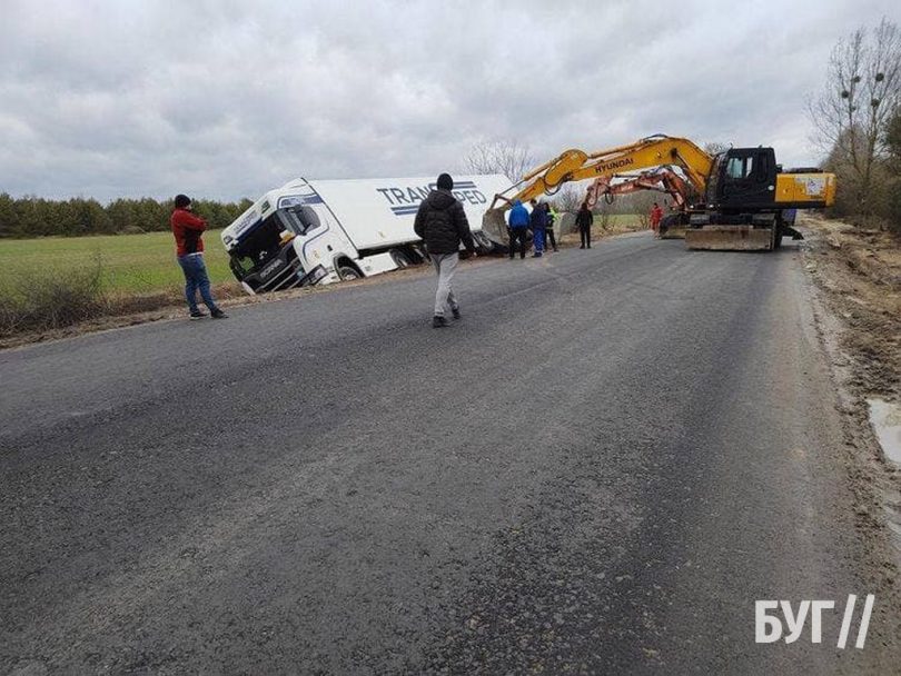 22-го лютого на трасі P-15 між Володимиром та Ковелем, поблизу Турійська, вантажівка злетіла в кювет.