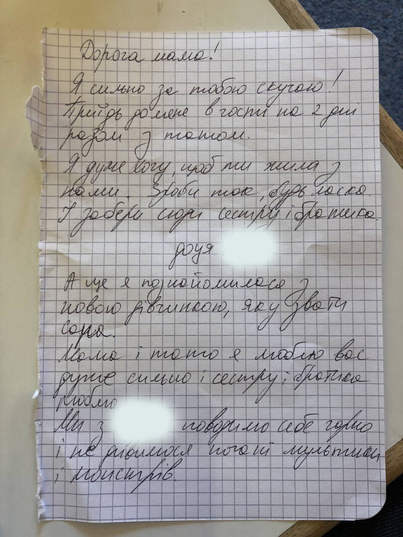 Одна дівчинка пише додому листи. В одному з них просить батьків приїхати хоч на два дні.