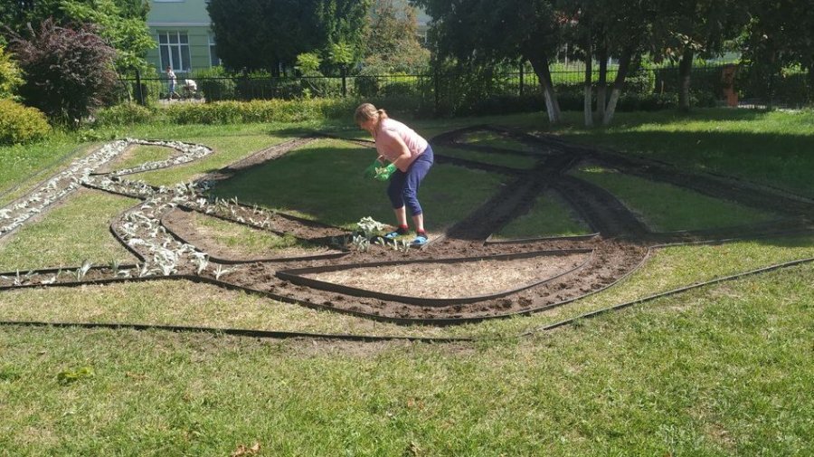 “Ініціатива була наша, мешканців цього гуртожитку. Ми хотіли залишити пам’ятку. Висаджуємо квіти. Зображений тут буде герб нашої держави, який символізує волю. Хочемо свободи та жити без війни. І дуже хочеться додому, віримо в це”, – додала переселенка Оксана Борщова.