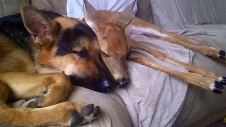 The Dodo опублікувало серію знімків, які ілюструють теплі стосунки між собакою і оленятком. Друзі гуляють у парку, разом їдять, облизують одне одного і сплять. Собака слугує для оленятка м’якою подушкою. А інколи виступає його сторожем: коли господиня просить собаку привести оленятко з вулиці до хати, гавкун з радістю біжить до своєї подружки і у її компанії прибігає додому. Ніжні почуття, які виявляє Сержант до Гречки, лісовій гості, напевно, і не снилися…