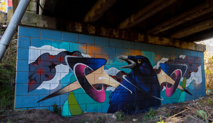 Луцький художник Андрій Присяжнюк створив новий мурал, зобразивши на стіні мосту чорного ворона.