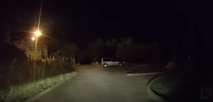 Попри присутність людей та світло ліхтаря, тварина вийшла на відкриту місцевість. Але, очевидно, її сполохав рух автомобіля, який їхав у її напрямку.