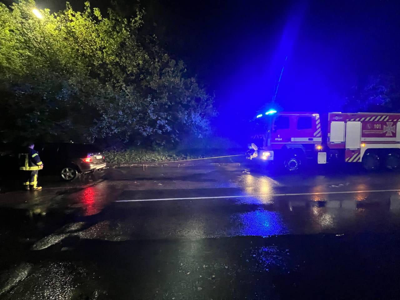 За допомогою пожежно-рятувальних автомобілі відбуксирували два автомобілі з підтопленої вулиці Карпенка-Карого в Луцьку.