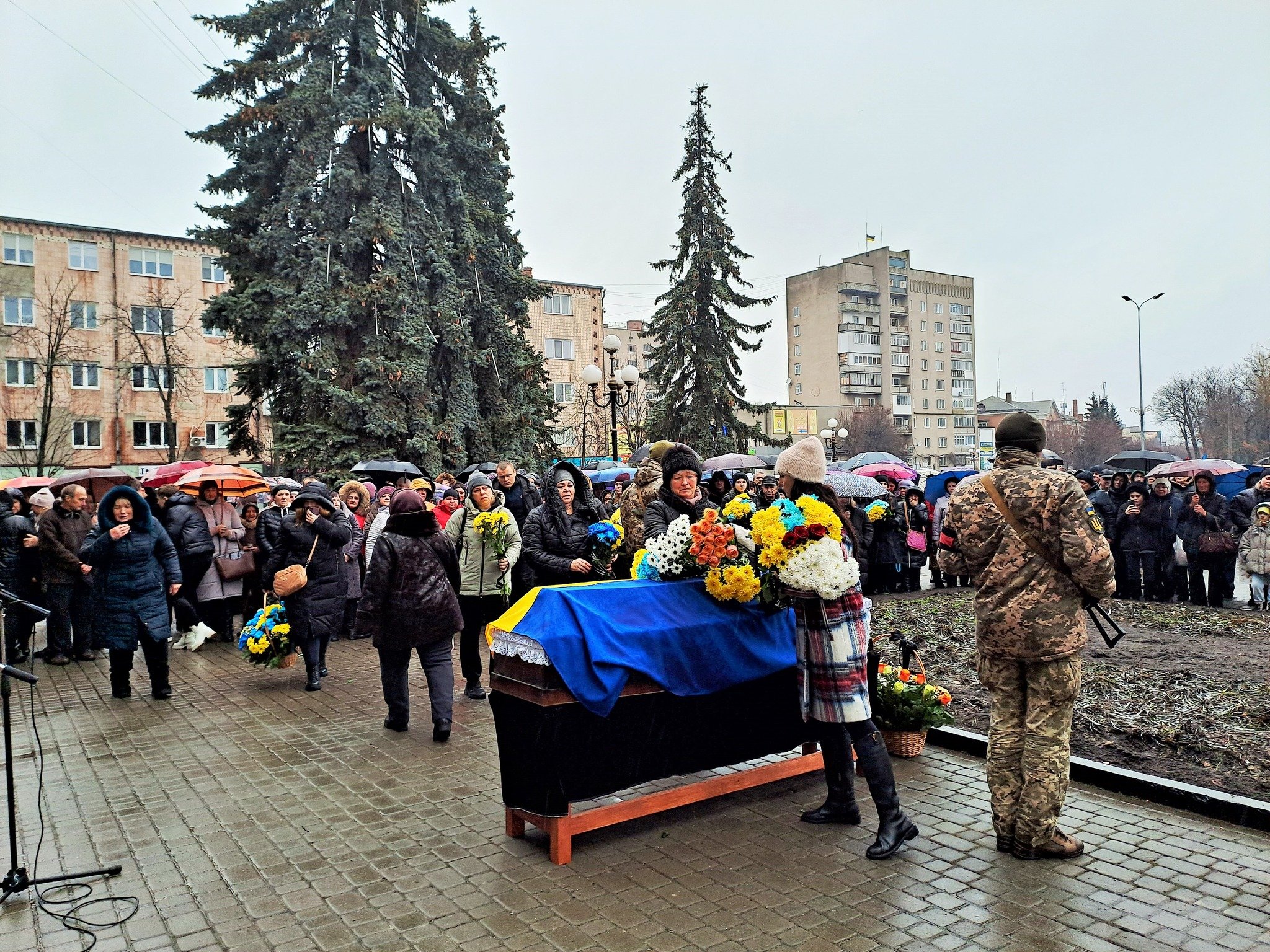Сьогодні, не зважаючи на рясний дощ, Віталія зібралось провести багато людей, була його велика родина, приїхали побратими.