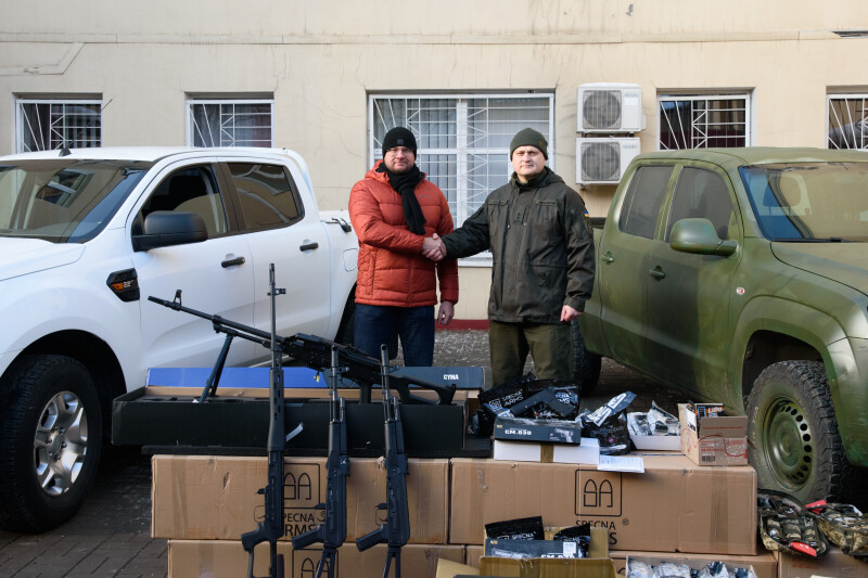 Також для військових передано й тренувальну стрілецьку зброю й шість наборів для розмінування. Ігор Поліщук зауважив, що це обладнання закуплено на прохання наших нацгвардійців, аби вони могли краще готувати особовий склад для виконання завдань із захисту України від російських загарбників.