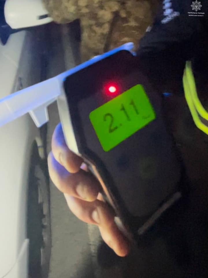 Під час спілкування інспектори у чоловіка помітили ще й ознаки алкогольного сп’яніння. Керманич пройшов освідування на місці. Драгер показав 2, 11 проміле, це перевищення допустимої норми в 11 разів.