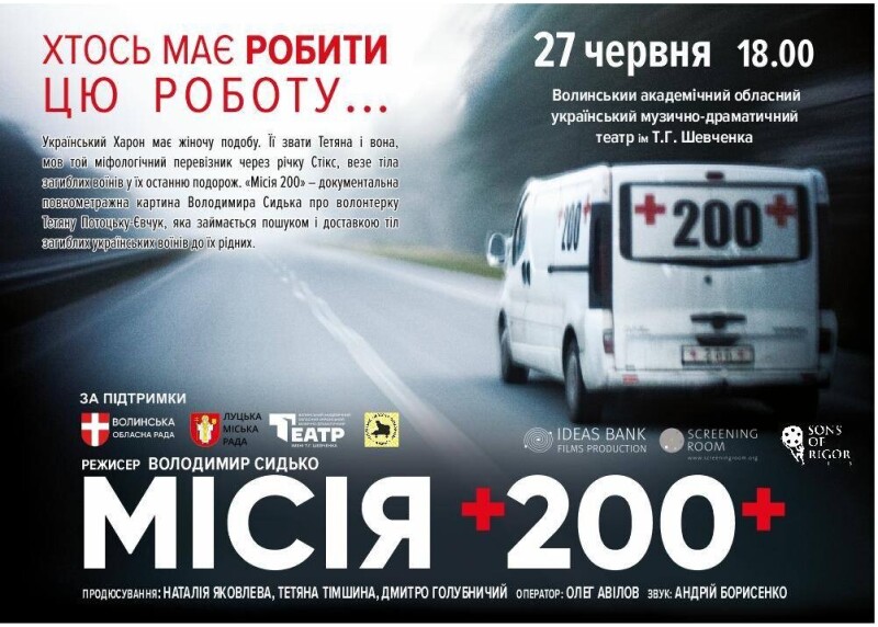 У четвер, 27 червня, о 18.00 у Волинському обласному музично-драматичному театрі імені Т.Г.Шевченка відбудеться прем’єра фільму «Місія 200».