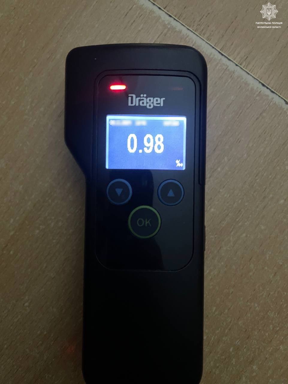 Крім того, інспектори помітили у 49-річного водія ознаки алкогольного сп’яніння. Чоловік пройшов огляд у медичному закладі. Результат – 0, 98 проміле.