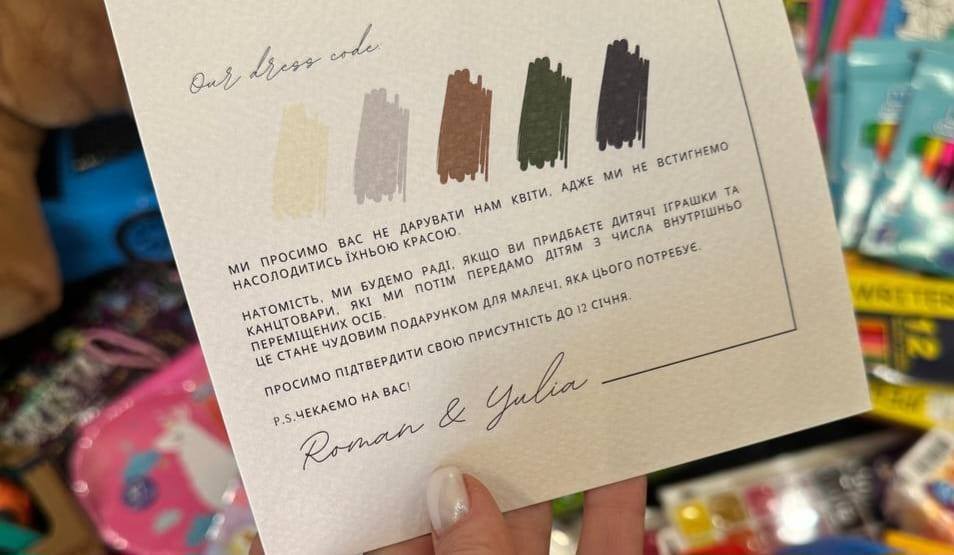 Саме тому наречені запропонували гостям принести на весілля замість традиційних квітів іграшки та канцтовари, щоб надалі передати їх дітям вимушених переселенців.