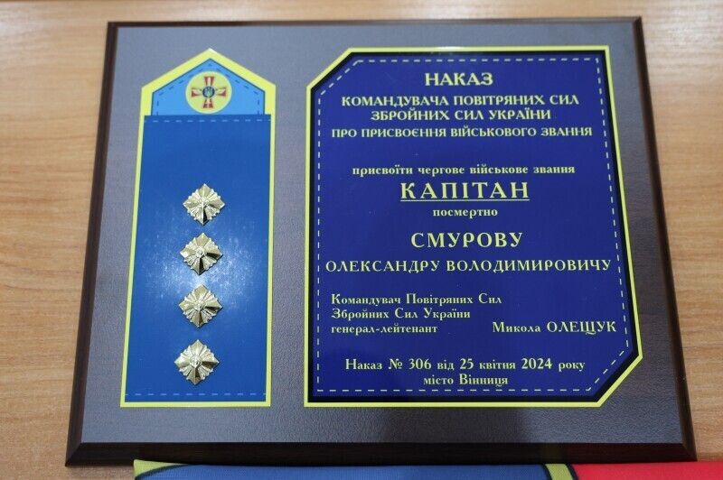 Окрім того, від імені Головнокомандувача Збройних Сил України Олександра Сирського, побратими Героя передали родині нагороду «Комбатанський Хрест». Також наказом командувача Повітряних сил Збройних Сил України Миколи Олещука Олександру Смурову присвоєно чергове військове звання капітан (посмертно).