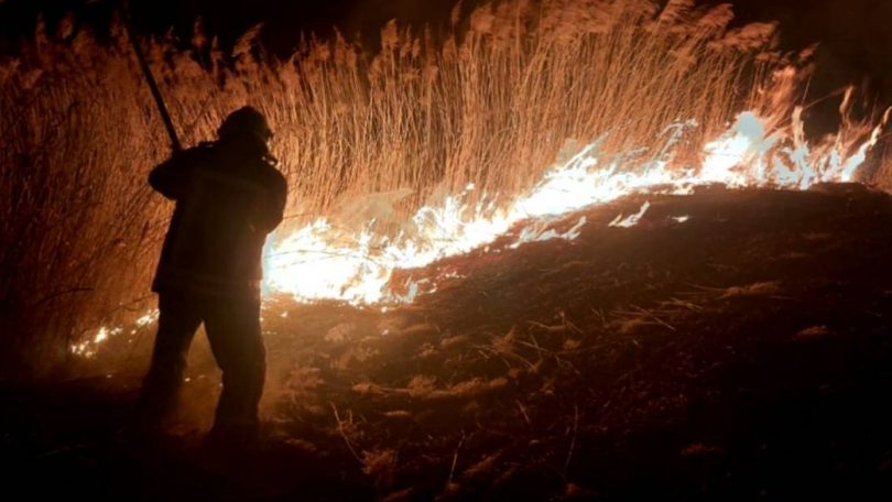 Ввечері 5 березня біля села Мстишин Луцького району сталася пожежа на відкритій місцевості: горів очерет, суха трава і чагарники на заболоченому схилі.