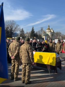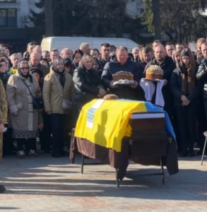 Багато людей прийшли до центру міста, щоб віддати шану воїну.
