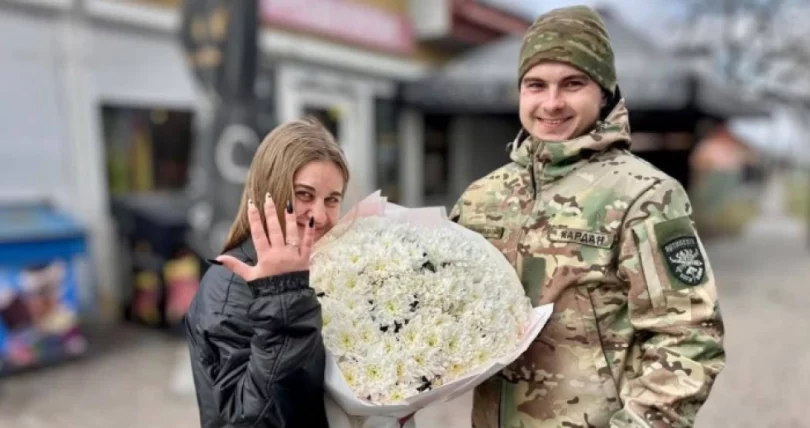 Володимирі військовослужбовець 406 окремої артилерійської бригади Максим освідчився своїй коханій Анастасії.