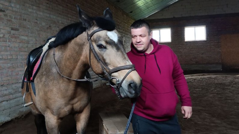 27-річний Валентин з Луцька втратив ногу у Курській області РФ у лютому цього року. Попри поранення, боєць виявив бажання покататися. Зізнається: мав власного коня, на якому теж їздив верхи.