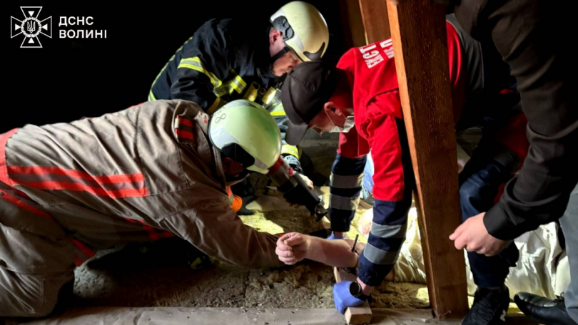 За допомогою шабельної пилки вони обережно відрізали частину дерев’яної конструкції разом зі штирем, зафіксували ушкоджену кінцівку та допомогли медикам транспортувати постраждалого з другого поверху до автомобіля екстреної медичної допомоги.