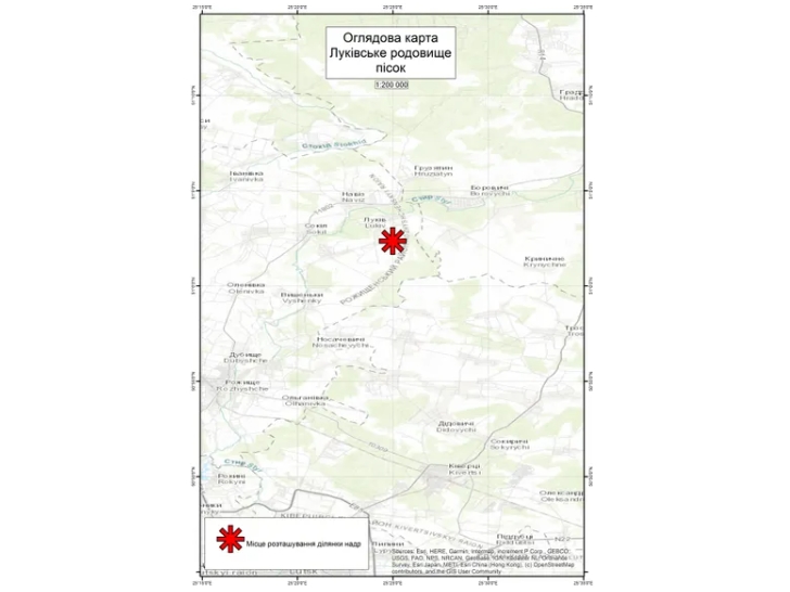 “Луківське родовище розташоване на відстані 1,4 км на південний схід від південно-східної околиці с. Луків колишнього Рожищенського району Волинської області. Вид корисної копалини: пісок. Вид користування надрами та строк, на який надається дозвіл: видобування корисних копалин, 20 років”, – йдеться в описі лоту.