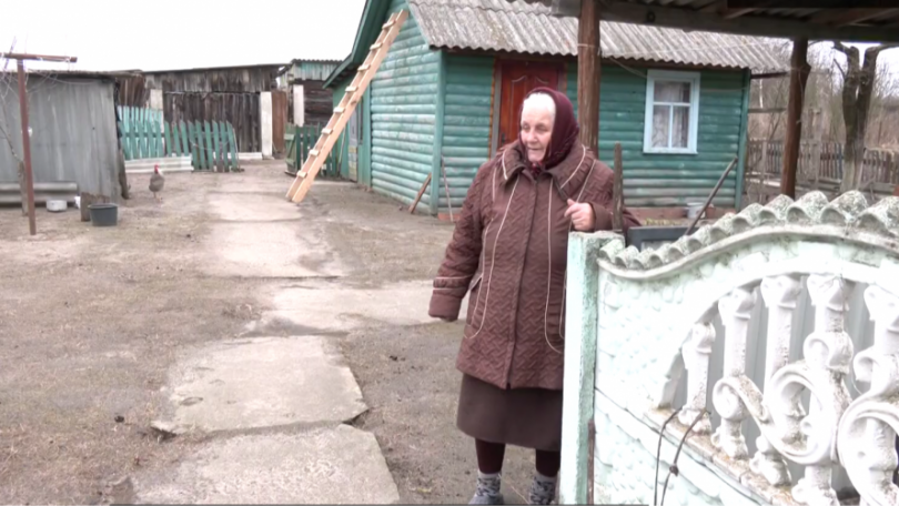Сусідка Людмили, 73-річна Ольга Герасимчук, живе сама. Пенсіонерка на подвір’ї порожньої сусідської хати набирає воду. Вдома, з її слів, колодязь висох. Труднощі у побуті є, але на життя жінка не скаржиться.