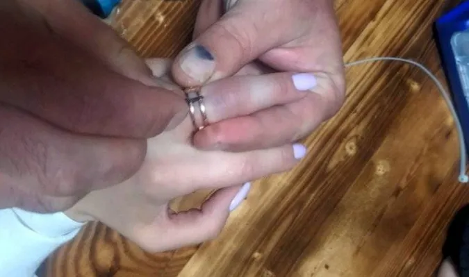 Рятувальник застосував бокові кусачки: обережно розрізав каблучку навпіл і звільнив палець.