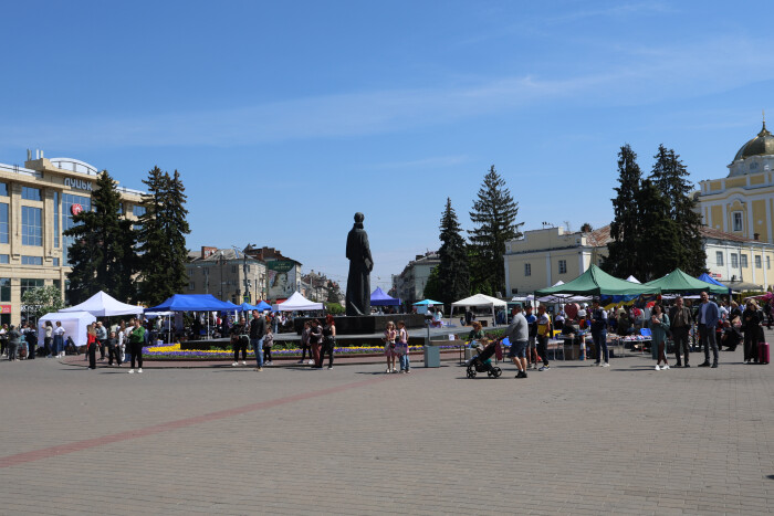 На Театральному майдані Луцька впродовж дня триває четвертий ярмарок ветеранського бізнесу “Я зміг – і ти зможеш!”. Цього разу на площі свою продукцію презентують більше сорока ветеранів. Продають одяг, м’ясні вироби, солодощі, чай, сувенірну та іншу продукцію.