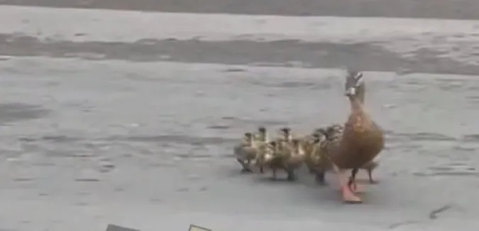 У Луцьку мама-качка з малюками чемно переходили дорогу (Відео)