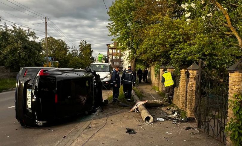 У понеділок, 19 травня, на вулиці Державності (колишня Чернишевського) сталась аварія: легковик на великій швидкості влетів в електроопору, після чого перекинувся набік.