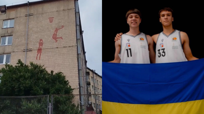 У Луцьку на стіні біля баскетбольного майданчика з’явився мурал на честь убитих у Німеччині баскетболістів Вови та Артема – один із хлопців у дитинстві грав саме на цьому полі.