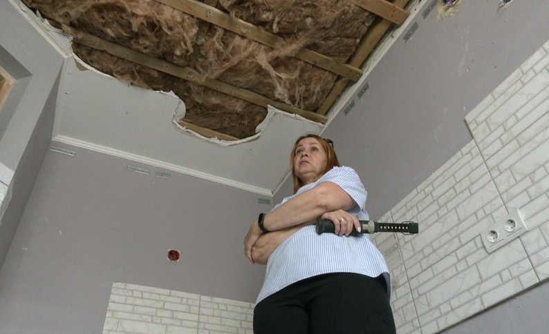 З її слів під час першого удару у її квартирі вирвало вікна з петель, а під час другого посипалась стеля. Нині в даху — дірка.