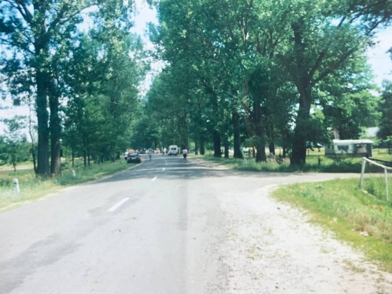 На знімку — високі тополі, асфальтована дорога і пляж, порослий травою. Для порівняння пані Лариса додала сучасне фото — сьогодні це впорядкована зона з тротуарами, стоянками, торговими точками та туристичною інфраструктурою.
