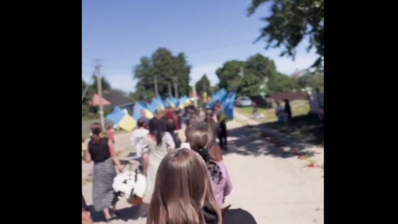 Героя провели в останню путь живим коридором шани, з квітами, прапорами та на колінах.