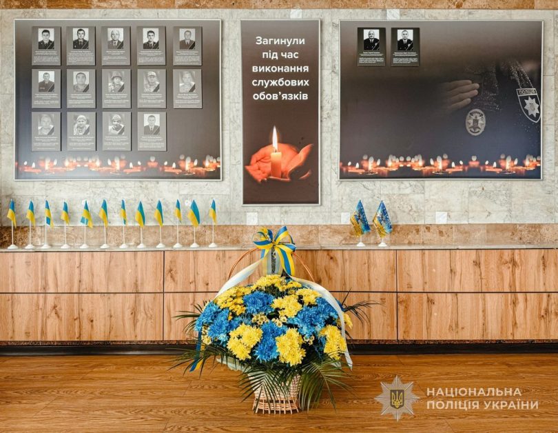 Почесна варта поклала квіти до стели загиблим працівникам у приміщенні ГУНП.